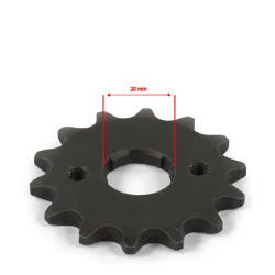 C'est un pignon destiné aux moteurs de Pit Bike et de Dirt Bike équipés d'arbre de transmission de 20mm. Il est compatible avec les chaînes de taille 420.