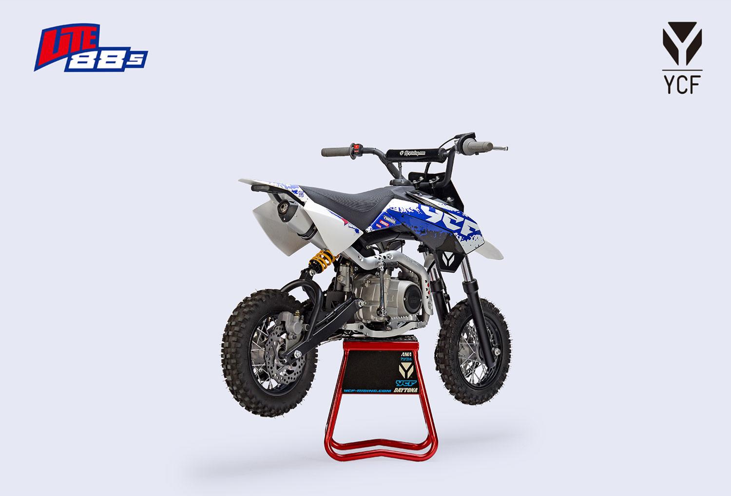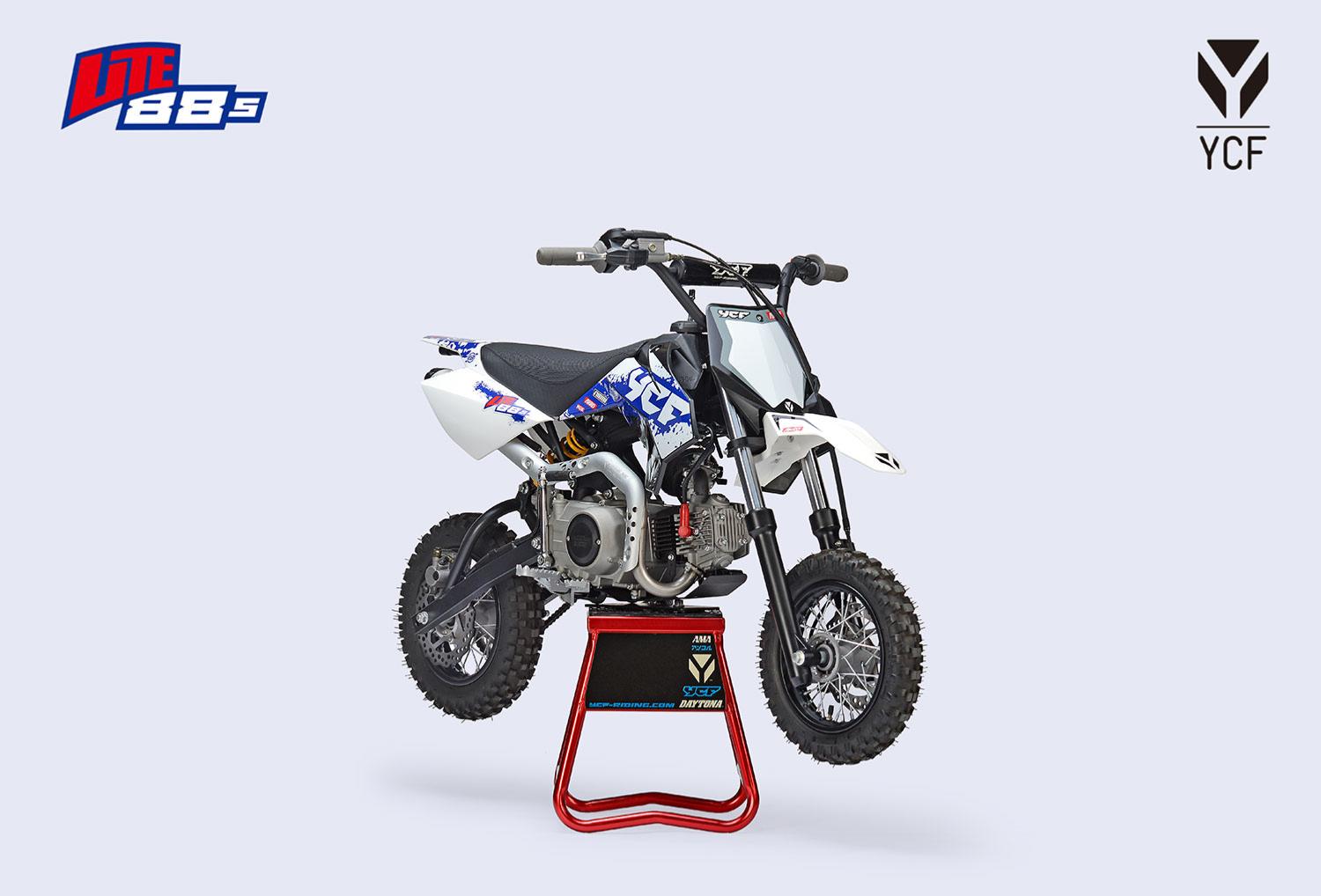 La lite 88 YCF est une dirtbike attipique, sa fourche traditionnelle et son bras cantilever lui donne un look unique. Equipée d'un moteur 88cc semi automatique, cette pitbike légère et maniable est adapté aux enfants et débutants qui veulent décourvir le motocross.