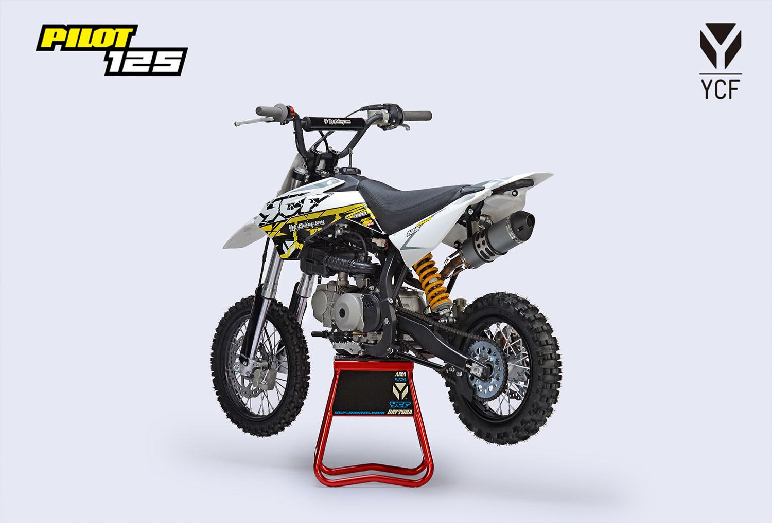 La PILOT 125 2024, équipée d'origine du moteur 125cc Fiddy racer, est une moto cross pour ceux qui veulent en découdre avec les terrains de minis les plus extrêmes.